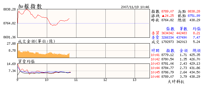 2.台股早盤買賣盤結構,多方力量居於空方之上。類股中以電子及金控較強,但成交量太小欠缺追價動能。