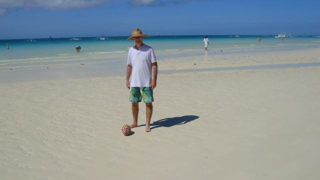 圖片為長灘上陪小孩玩足球的澳洲籍帥哥!