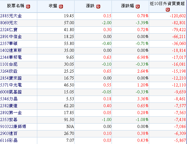- 2010: 外資最近10個交易日大買那些公司的股票?