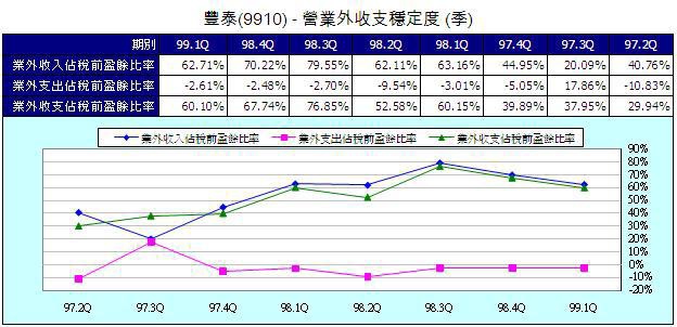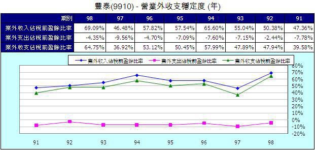 營業外收支佔稅前純益之比重因海外地區收益成長而提高,海外轉投資收益對該公司獲利之影響性逐年提高之中。
