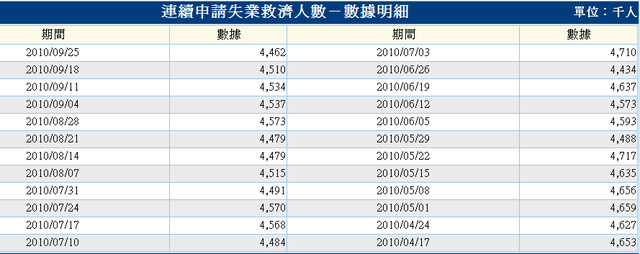 在截至9月25日的一周中,持續領取失業救濟人數環比下降4.8萬,至446萬,後者創6月26日所在那周以來的新低。此前一周的數據被上調至451萬。據湯森路透集團的調查,市場分析師平均預期持續領取救濟人數將由勞工部早先發布的446萬降至約445萬的水平。