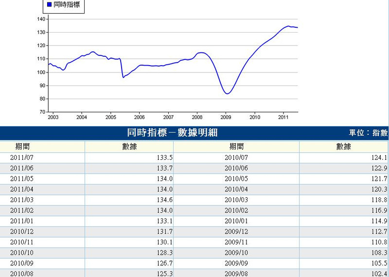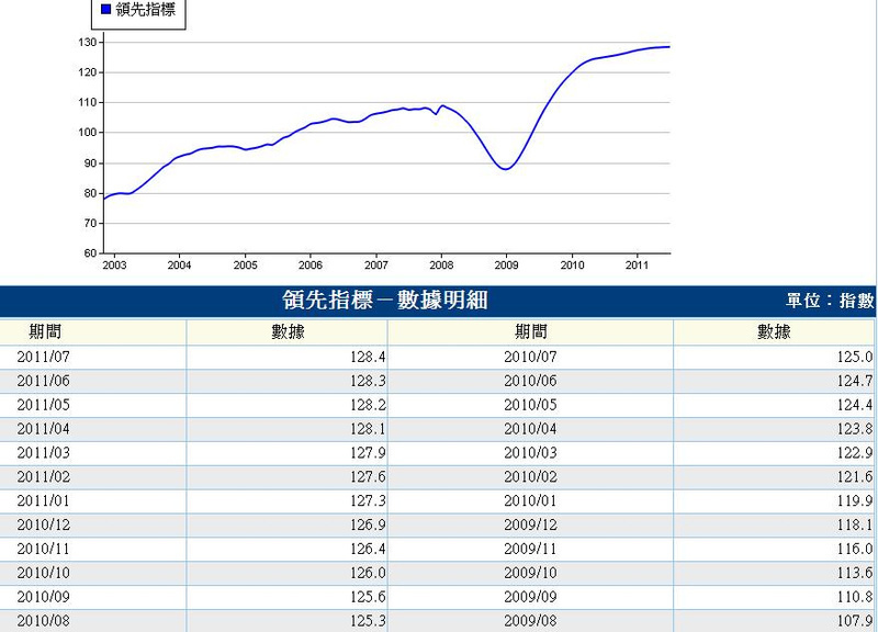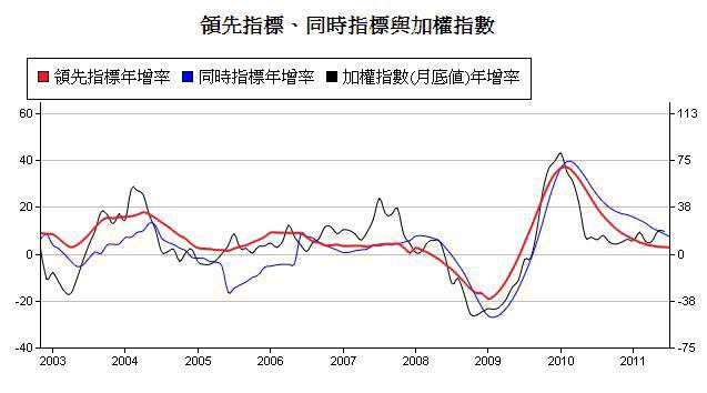 所幸目前領先指標綜合分數趨勢並未下降,但領先指標年增率趨勢至5月為止為第15個月下滑,幸6月出限持平,但仍應提防在2011年轉為負的年增率之可能性。若經濟領先指標綜合分數轉為下滑,對經濟景氣之持續復甦將是警訊,領先指標綜合分數之持續追蹤將變得相當重要。