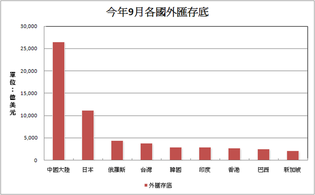 其次,至9月底,中國外匯存底攀高至2.65兆美元,再創歷史新高,穩居全球第一。第三季外匯存底較6月底激增1,940億美元,因第三季貿易順差僅656億美元,據估計,第三季熱錢流入佔外匯存底增加之比重,高達近四成。由此可見,國際熱錢對人民幣長期匯率的態度,仍認為必將走上更大幅度的升值之路。然而,中國為顧忌外銷產業涵養的廣大就業人口之穩定性,人民幣匯率仍將以緩升為主調。