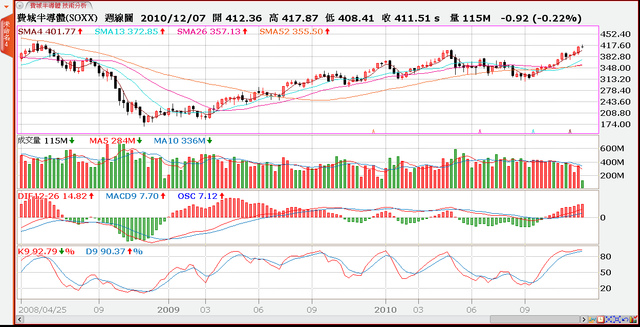然而,無論從日K線或周K線之趨勢觀察,目前各短、中、長期平均線都呈現向上揚升格局並無改變。目前10日、20日線分別已墊高至8524點及8419點,在大盤指數未出現爆量長黑的背離走勢之前,若大盤拉回整理出現量縮情況,8500點以下可視為短期整理之另一次相對低點。
