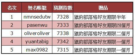 【得獎名單】獵豹部落格第六屆猜謎活動得獎名單出爐囉!